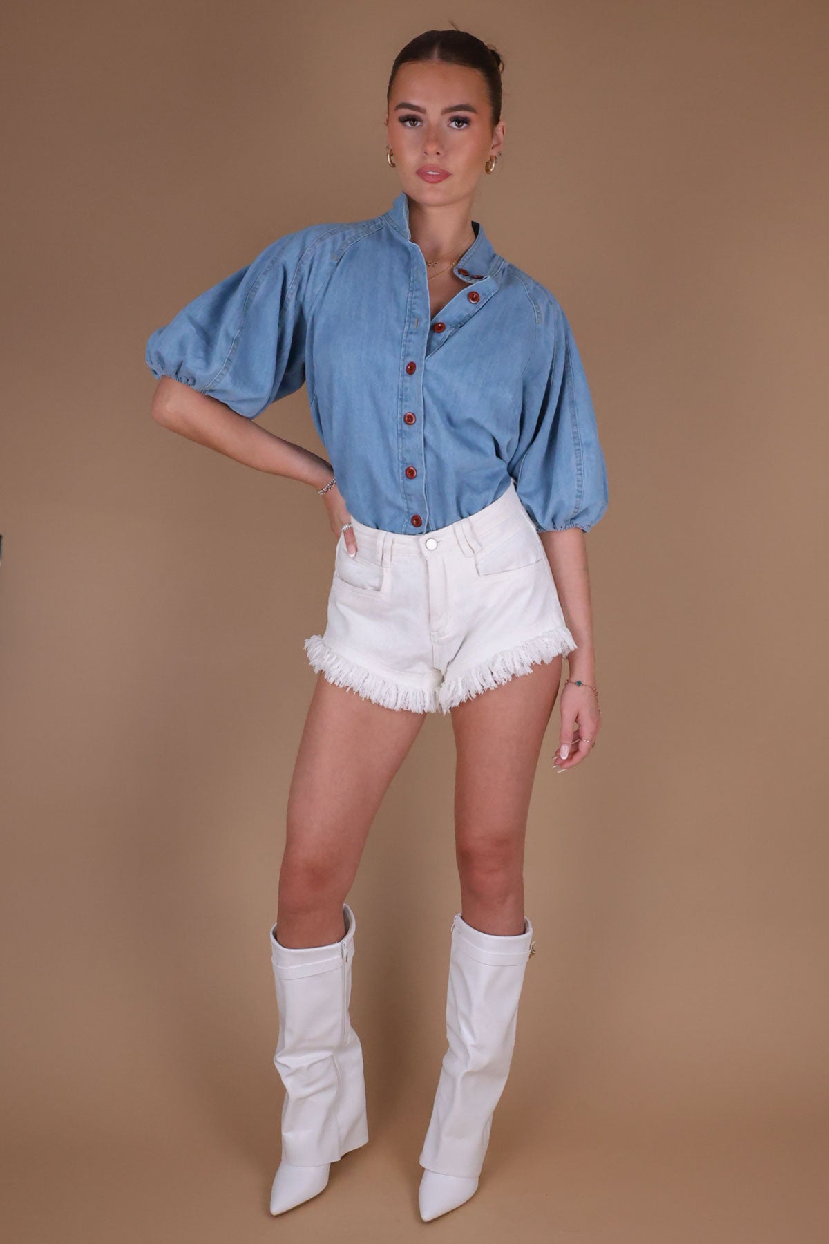 White Denim Frayed Hem Shorts