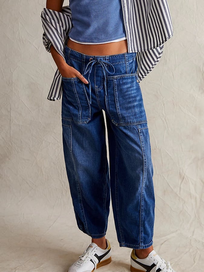 Women's Casual Loose Low Rise Lace-Up Jeans
