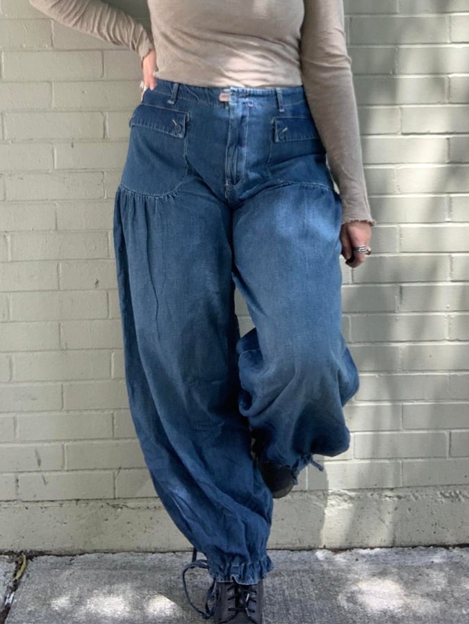 Women's Fashion Pleated Mid-Rise Loose Wide-Leg Jeans